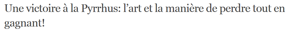 Une victoire à la Pyrrhus(Pyrrhos, dont le nom, en grec, signifie « le roux ») est une victoire (généralement militaire) obtenue au prix de terribles pertes pour le vainqueur.L'expression est une allusion au roi Pyrrhus Ier d'Épire, dont l'armée souffrit des pertes irremplaçables quand il défit les Romains pendant sa guerre en Italie à la bataille d'Héraclée (sur le territoire de la cité d'Héraclée de Lucanie) en 280 av. J.-C. et à celle d'Ausculum en 279 av. J.-C.