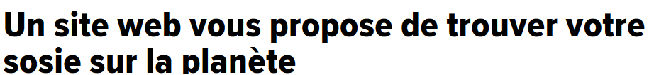 Un site web propose aux internautes de trouver son Dupond à son Dupont.Twin Strangers (jumeaux étrangers) invite les usagers à téléverser une photo style passeport de leur visage sur sa plateforme. Ensuite, une intelligence artificielle évalue instantanément les ressemblances avec les «millions de profils».