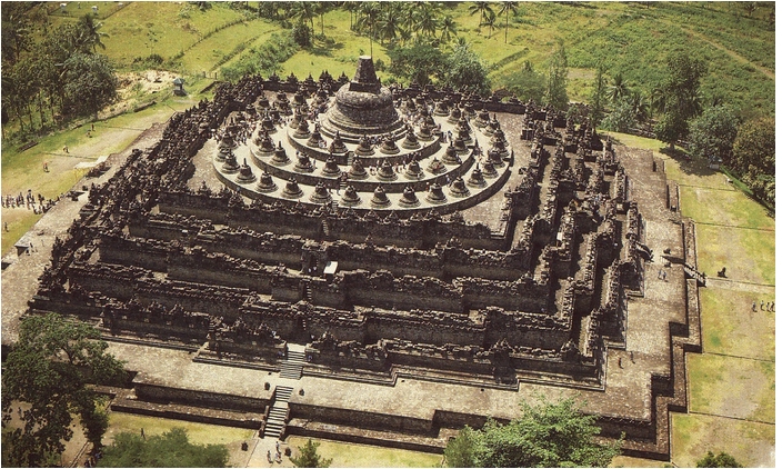 Un temple est connu pour ses pourtours décorés de bas-reliefs pornographiques extrêmement crus. Si on examine ce temples dans une perspective tantrique, que constate-t-on ? Ils sont constitués de plusieurs niveaux. Sur les murs extérieurs, les statues représentent des scènes d’une sexualité totalement débridée constitués de plusieurs niveaux. Sur les murs extérieurs, les statues représentent des scènes d’une sexualité totalement débridée. Si l’on monte les trois niveaux suivant vers l’intérieur du temple, les représentations sexuelles se font progressivement de plus en plus sereines et harmonieuses. Au cinquième niveau, les statues vont par couple, assises face à face, se touchant à peine, se pénétrant subtilement pour atteindre la fusion entre les polarités féminines et masculines. Au sixième niveau, l’étage est couvert de grandes cloches de pierre contenant des statues d’êtres humains d’allure androgyne, assis seuls en position du lotus, contemplant leur horizon intérieur. Et au septième et dernier niveau, il y a un stûpa central en forme d’immense cloche… et plus personne à l’intérieur. Les êtres ont-ils transcendé leur corps et fusionné dans le Tout ?