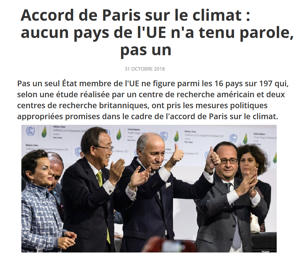 La COP21, la conférence sur le climat organisée à Paris en grande pompe, a été clôturée il y a presque 3 ans. Dans la déclaration finale, il était stipulé que les signataires s'étaient engagés à limiter le réchauffement climatique à 2 degrés Celsius par rapport à 1880 d'ici à 2100.