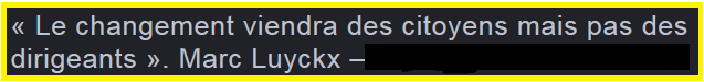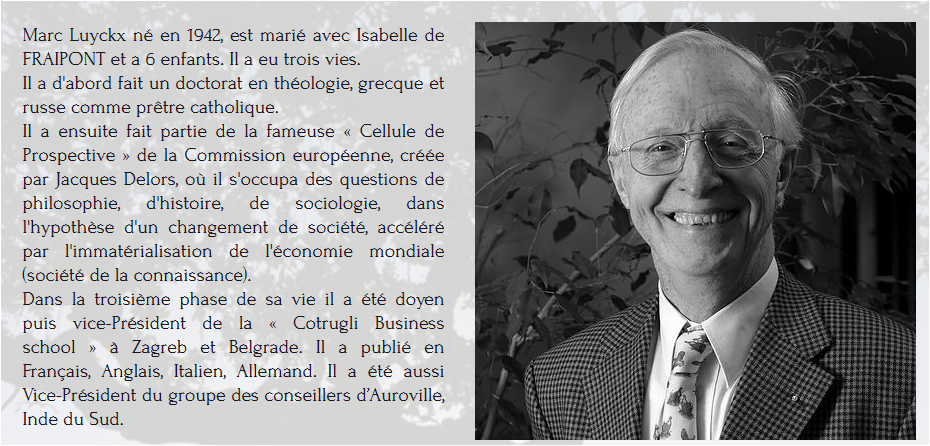 « Nous sommes dans une époque où l’humanité est en train de modifier le système de croyance de la société occidentale. Aucune force politique économique et militaire ne peut arrêter ce processus. Et en changeant leur vision des valeurs de base de la vie, les humains sont en train de changer de civilisation. » Teilhard de Chardin disait qu’au début du 21e siècle, l’humanité serait confrontée à une série d’une vingtaine de problèmes inextricables, insolubles et connectés les uns avec les autres. La solution passe en atteignant un niveau de conscience supérieur : la noosphère. Comme dit Einstein, on ne résout les problèmes qu’en s’élevant à un stade supérieur. "Nous sortons d'une civilisation de la quantité et nous entrons dans une civilisation de la qualité".