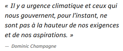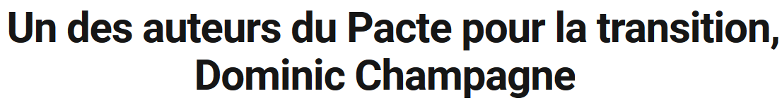 Les adhérents relaient ainsi l’appel du GIEC, le Groupe d’experts intergouvernemental sur l’évolution du climat,Dans un rapport de 728 pages,Citant près de 6000 sources scientifiques qui exposent les nombreux impacts déjà à l'oeuvre, qui conclut qu’il reste deux ans aux États pour prendre des décisions fermes afin d’éviter un désastre irréversible.Le Pacte de transition a déjà recueilli plus de 150 000 signatures de citoyens qui s’engagent à poser des gestes pour réduire leur empreinte écologique et l’objectif est d’atteindre au moins un million.