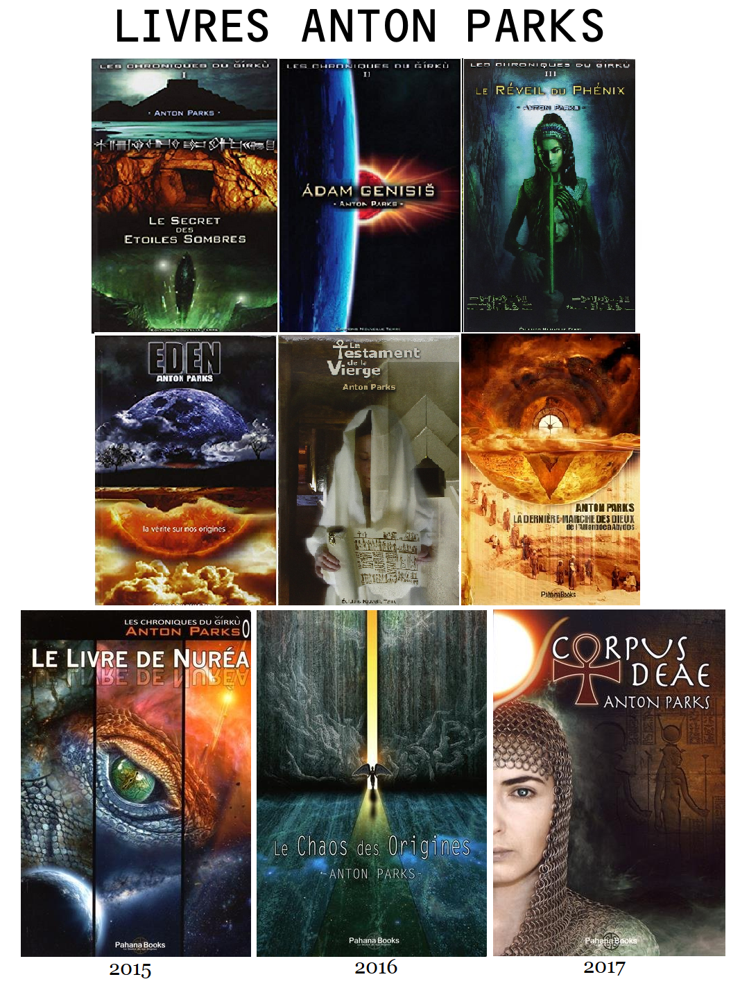Possédant une formation de graphiste dans les disciplines du marketing et de la communication et travaillant dans ce domaine depuis 1985, Anton Parks s’est également spécialisé dans les cultures de l’Orient ancien dès les années 2000. A ce titre, il est l’auteur de la série les Chroniques du Gìrkù qui retrace, sous la forme d’un récit et d’un minutieux travail de recherche, les origines de l’humanité à travers le regard des dieux de nos mythologies.Anton Parks est le créateur d’une thèse révolutionnaire sur le codage de la langue sumérienne – étude exposée dans sa série des Chroniques du Girku (3 tomes) où il est aussi retracé le processus qui l’a conduit à ces découvertes inédites.