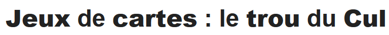 Le jeu du « Trou du cul » ou « Trouduc » nous vient de Chine, où l’on y joue depuis des temps immémoriaux. En effet, le « Zhengfen » est bien connu des joueurs de la région de Pékin, où on y joue dans des cafés autour de la cité interdite. Ce jeu s’est rependu en Occident avec la mondialisation galopante, et notamment grâce aux asiatiques qui l’ont amené dans leurs valises en Amérique du Nord. La version commerciale au Québec s’appelle la « Bande des quatre », un nom il est vrai bien plus commercial… C'est un jeu de cartes se jouant à quatre joueurs ou davantage, avec un jeu de 32 ou de 54 cartes.Le but de chaque joueur est de se débarrasser le plus rapidement possible de la totalité de ses cartes. Les joueurs ayant été les plus rapides à se débarrasser de leurs cartes ont droit à un avantage pour la partie suivante et inversement les plus lents se verront pénalisés par un handicap. L'intérêt de ce jeu est donc d'enchaîner plusieurs parties à la suite afin de voir les joueurs évoluer dans le classement.