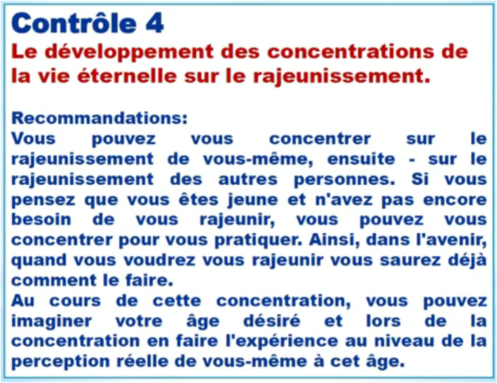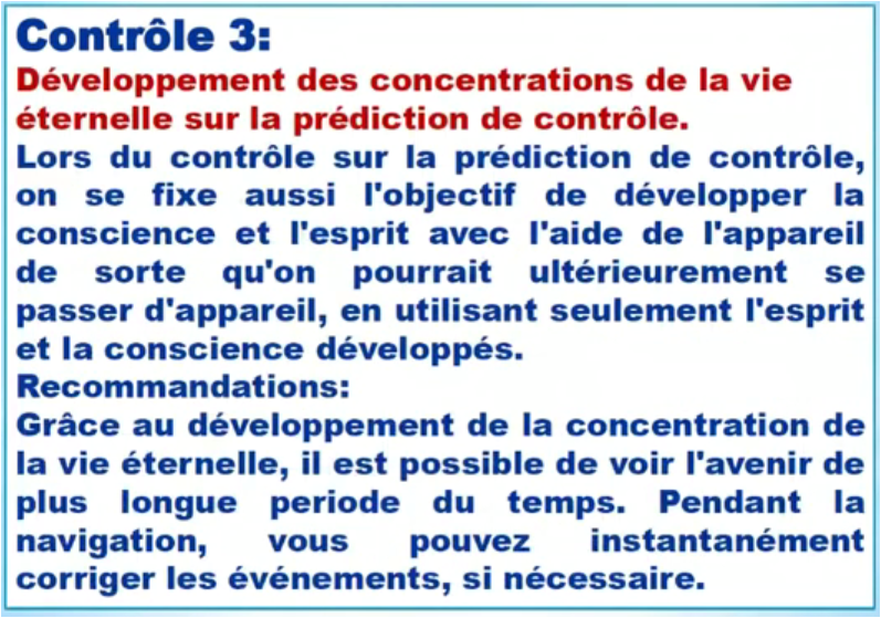 Les auditeurs seront en mesure d'en apprendre davantage sur le développement de concentrations, qui fournissent la vie éternelle, avec l'aide de l'appareil, selon les commandes suivantes: