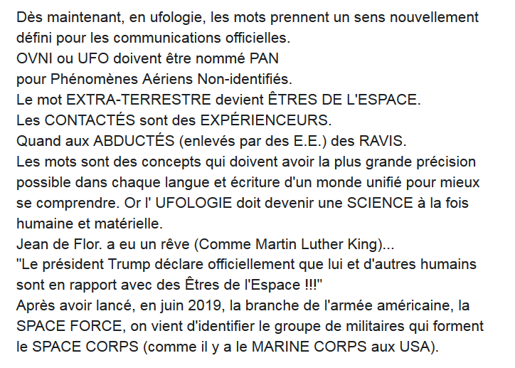 Si l’humanité ainsi coexistait jusqu’à la Date Limite, elle serait à partir de là prête à entrer dans une nouvelle ère de son existence, et des actions magnifiques seraient vérifiées partout, y compris nos frères venus d’autres planètes qui seraient expressément autorisés à se présenter publiquement et officiellement aux habitants de la Terre.