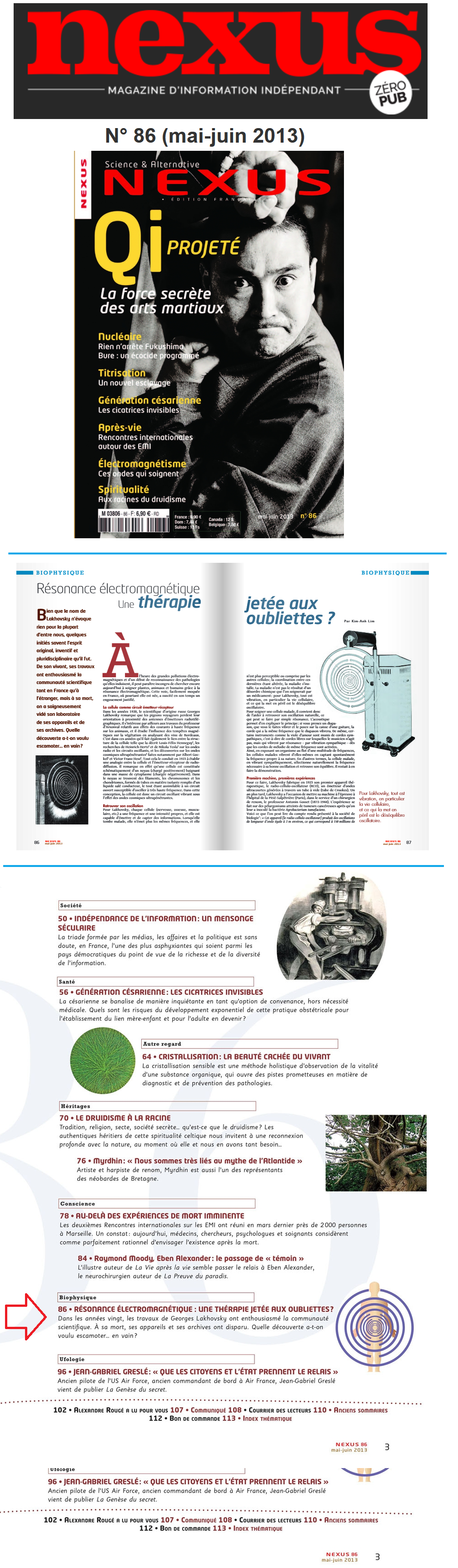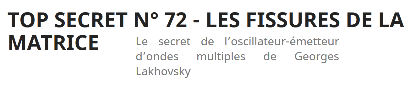 Georges Lakhovsky est un inventeur-né, effectivement à 6 ans il construisit dans un ruisseau un moulin muni d’une roue à aube entraînée par le courant -En 1899, Georges Lakhovsky devient célèbre en inventant pour les Chemins de fer de France et de Navarre des tire-fond1 ingénieux évitant le déraillement des trains. Une idée qui lui vînt après que le Biarritz-Paris qu’il rata, eut déraillé. À cette époque, l’ingénieur est surtout stimulé par les recherches et découvertes sur la télégraphie sans fil (TSF), les rayons X et les radiations cosmiques. En 1923, Georges Lakhovsky part du principe que la cellule est un système émetteur/recépteur comparable au système de radiodiffusion, pour lui dans ce système les filaments conducteurs sont les chromosomes et les chondryomes, ces système conducteurs sont en résonnance avec les champs de force externes à l'être humain : la cellule vibre, elle est "dialogue" avec l'extérieur.Tesla s'est rendu en Europe, où l'amitié a été établie, et des années plus tard, Lakhovsky s'est rendu à New York pour rendre visite à son ami Tesla. Partant de ce principe, En collaboration avec Nicolas Tesla il créa un appareil radio générant des champs électromagnétiques pulsés entre deux antennes. il invente l'oscillateur à ondes multiples, un appareil qui émet des fréquences électromagnétiques avec 2 antennes, une émettrice et une réceptrice, un homme se place entre les 2 antennes et reçoit cette "soupe d'émission" qui se situe entre 75 K Hertz et 8 Giga Hertz, cette appareil, G. Lakkhovsky s'en sert pour soigner des cancers chez les animaux, les végétaux et les êtres humains[/b].Il a soigné beaucoup de cancers de la peau, l'hypotension, des inflamations chroniques, des ulcers au niveau des jambes, neurasténies, névralgies, des ottites, des paraplégies, protatites, etc, etc.