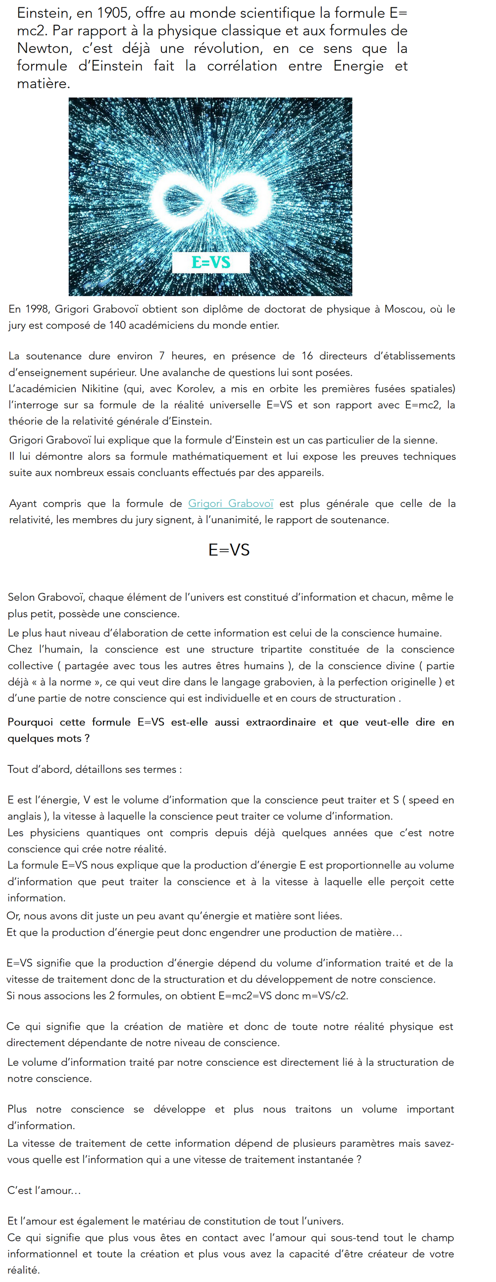 Grigori Petrovich GRABOVOÏ est né le 14 novembre 1963 dans le village de Bogara, Quartier de Kirov, dans la Région de Tchimkent au Kazakhstan .Sans rentrer dans le détail des multiples titres honorifiques qu’il a reçu à l’international, Grigori GRABOVOÏ est notamment Docteur en sciences physiques, en mathématiques et en Philosophie, diplômé en Médecine Thérapeutique, et diplômé de l’Ordre de Malte. Il est aussi membre de l’Académie Internationale de l’Informatisation, membre de l’Académie des Sciences Naturelles Russes, membre de l’Académie Italienne de développement économique et social, membre de l’Académie internationale des auteurs des découvertes et des inventions scientifiques, Président de l’Académie de sciences de New York, Professeur en Ingénierie des systèmes et de l’informatique (AIISA), Conseiller du Service de l’Aviation Fédérale Russe.…Grigori GRABOVOÏ a permis à la Russie d’éviter bien des catastrophes en diagnostiquant par clairvoyance différentes avaries dans des trains, des métros et des avions. Il a aidé plusieurs gouvernements dans la prévention de catastrophes qui menaçaient le genre humain, comme son intervention pour sauver la station spatiale “MIR” et la navette ATLANTIS alors en danger. Cela lui a valu d'être surnommé « l'homme rayons X ».