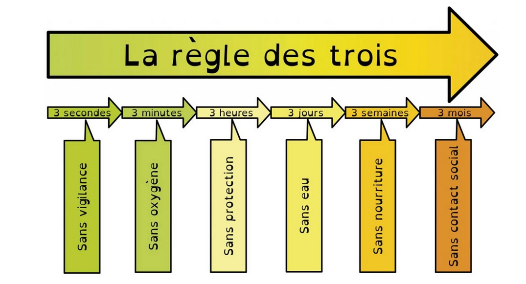 La règle des 3 est une règle fondamentale a retenir lorsque l'on ce retrouve en situation de survie.