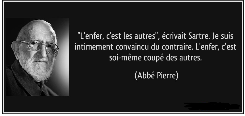 Il faut revenir aux sources pour comprendre quel est le sens de cette phrase de Sartre .« Je veux dire que si les rapports avec autrui sont tordus, viciés, alors l’autre ne peut être que l’enfer. Pourquoi ? Parce que les autres sont, au fond, ce qu’il y a de plus important en nous, même pour la propre connaissance de nous-mêmes. Nous nous jugeons avec les moyens que les autres nous ont fournis. Quoi que je dise sur moi, quoi que je sente de moi, toujours le jugement d’autrui entre dedans. Je veux dire que si mes rapports sont mauvais, je me mets dans la totale dépendance d’autrui et alors en effet je suis en enfer. Il existe quantité de gens qui sont en enfer parce qu’ils dépendent du jugement d’autrui ».