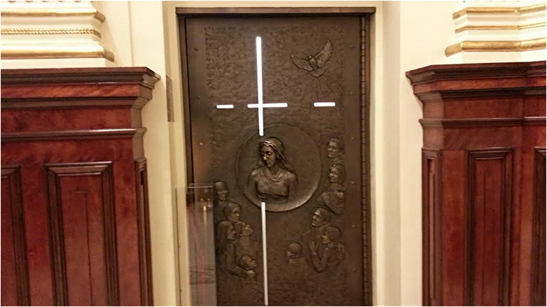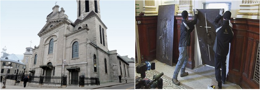 D’autres Portes saintes se trouvent à Rome, Ars et Compostelle. La porte en bronze, due à l'artiste québécois Jules Lasalle, est percée dans le mur de la chapelle du Sacré-Cœur, située du côté nord de la cathédrale. Elle a été construite grâce à la contribution des Chevaliers de Colomb du Canada et des Etats-Unis. La cathédrale Notre-Dame de Québec a été érigée en 1664 par Mgr François de Laval. L’année jubilaire s’étendra du 8 décembre 2013 au 28 décembre 2014. Un Jubilé qui concerne toute l’Amérique du Nord.Avec sa porte sainte, Notre-Dame de Québec est « une autre Rome pour l’Amérique. »quand viendra le temps de la fermer, elle ne sera pas emmurée, mais simplement scellée, en attendant que le pape donne la permission de l'ouvrir de nouveau.La cathédrale célèbre en effet ses 350 ans d’existence et les autorités ecclésiastiques québécoises ont obtenu l'autorisation de construire une Porte sainte, la septième au monde, la première hors d’Europe, un privilège exceptionnel autorisé par le Saint-Siège.La porte sainte de Notre-Dame de Québec sera différente des six qui existent déjà en Europe. Comme les autres, elle sera faite d'un matériau noble, le bronze en l'occurrence, mais, détail inusité, elle laissera filtrer la lumière JULES LASALLE a choisi de la transpercer de bord en bord par une croix de verre qui laisse passer la lumière, en symbole de la foi.»La frénésie entourant l’inauguration de la Porte Sainte à la basilique-cathédrale Notre-Dame de Québec se fait ressentir jusqu’à Rome, puisque le pape François a souligné le jubilé du 350e de Notre-Dame de Québec lors de la prière hebdomadaire de l’Angelus, récitée depuis son balcon.