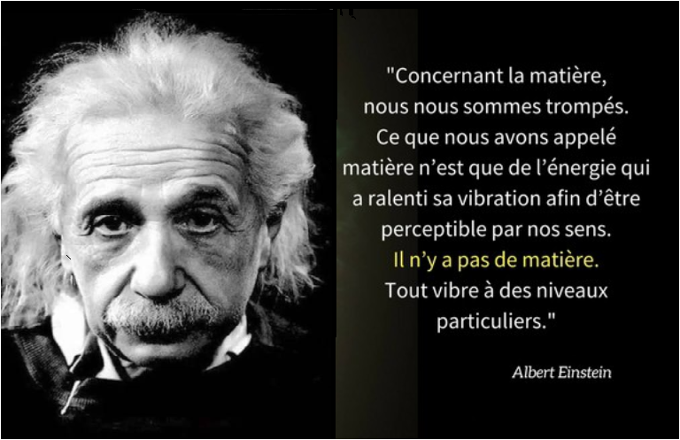 Selon lui, tout l’univers est composé de vibrations : sons, couleurs, objets, animaux, êtres humains et même les pensées de ces derniers.ALBERT EINSTEIN disait également...