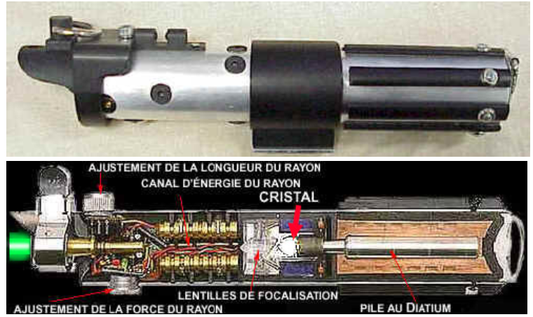 Le SABRE LASER est une arme personnelle développée par chaque CHEVALIER DJÉDI.Au centre, un CRISTAL qui doit être synchronisé sur le CRISTAL BIOLOGIQUE du MAÎTRE DJÉDI.