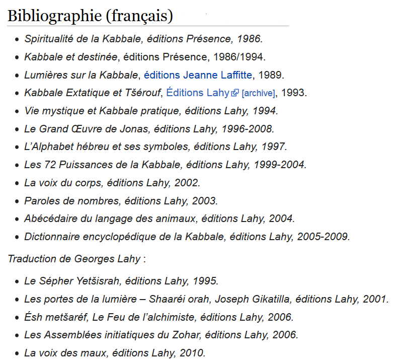 Georges Lahy dit Virya (né le 27 novembre 1955 à Marseille), kabbaliste, écrivain, éditeur. Arrière-petit-fils du psychologue et sociologue Jean-Maurice Lahy.
