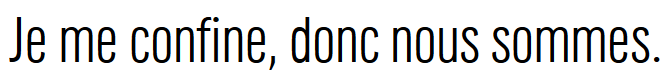 Dans la première syllabe de confinement, il y a c’est certain, le cum de l’«avec». Mais que fait-il là ? Je ne me l’explique pas, bien qu’un espoir, déjà, m’emporte à toute vitesse. Cum : tous ensemble ? Comme dans la situation que nous partageons tous, là, en ce moment ? Ce serait beau, sans doute trop beau. Et, au cœur du mot, il y a fin. Quelle fin ? Bon commençons par là, par la fin. S’agit-il de finesse ? De cessation ? Non, sans doute plutôt de la fin qui parle de «terme», de «limite». En l’occurrence, des strictes limites que le confinement impose à nos possibilités de déplacement. Oui, c’est bien cela. Fin, du latin finis, «borne», «limite d’un champ, d’un territoire». C’est bien cette fin-là qui est dans confiner.Tous rapprochés.