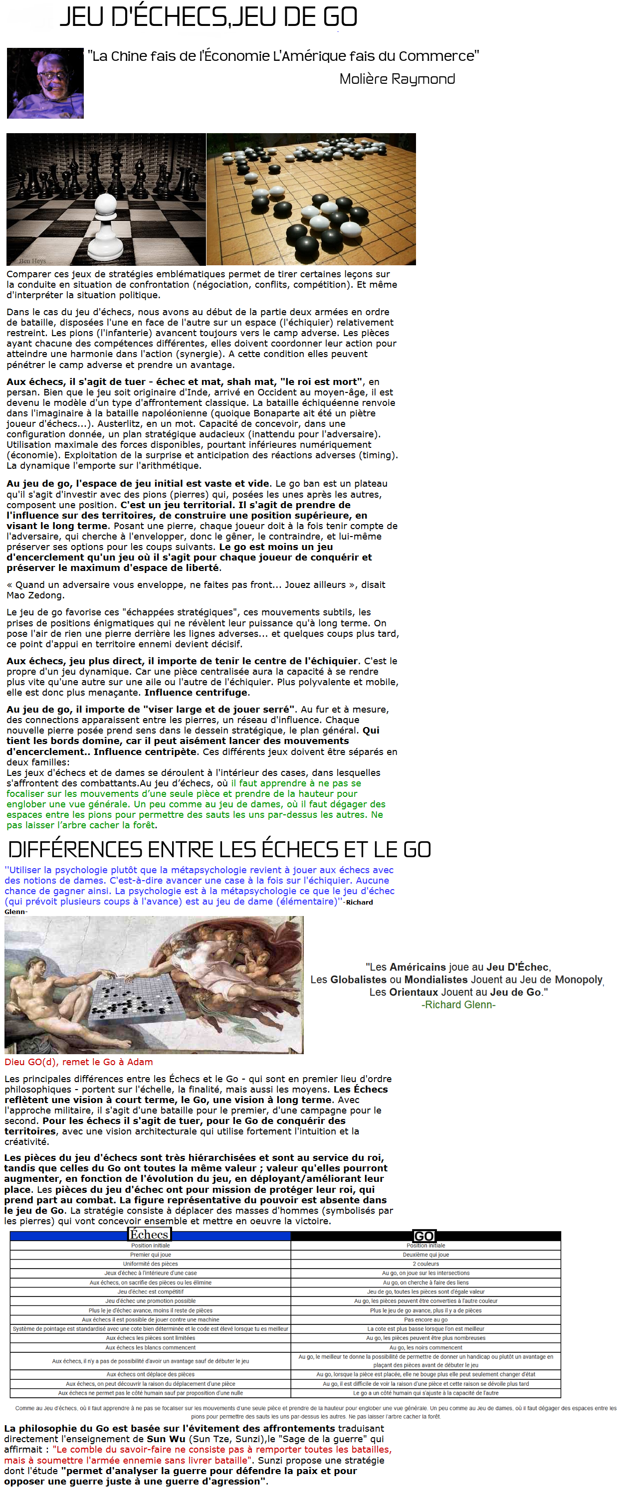 Il a ensuite encore été utilisé plusieurs fois vers le début des années 1900, comme lors du conflit qui opposa le Japon à la Russie.le Péril jaune est une invention des Blancs impérialistes et colonialistes ; il est une métaphore du mal qui ronge l’Occident ; il est une figuration de l’inconscient.La croissance de la Chine, qui a détrôné le Japon au rang de deuxième économie mondiale, ravive aux Etats-Unis le spectre d'un "péril jaune", à savoir la peur de voir le champion économique mondial avalé par un rival asiatique.Ce serait au tour de la Chine d'être le “maître du monde” durant le XXIe siècle.Surendettée, moins vigoureuse, l'économie américaine va-t-elle devoir abandonner la place de première puissance mondiale qu'elle occupe depuis près d'un siècle? Ce sera peut-être le cas dès 2020, d'après des projections publiées en juin par la Banque mondiale, institution qui a un président américain et un économiste en chef chinois.“Quand la Chine s'éveillera, le monde tremblera !” On connaît depuis longtemps cet aphorisme prêté à Napoléon...Faut-il avoir peur de la nouvelle puissance chinoise ? La question mérite - assurément - d'être posée. Ne serait-ce qu'au regard des “masses” en jeu : masse humaine - avec 1 410 631 051 d'individus-