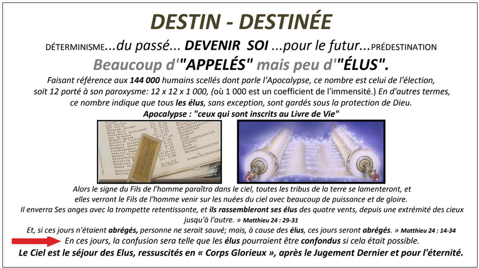 C’est un principe vital que de visiter son futur avant que de le vivre. C’est une information essentielle où il y a échange de données avec notre « Double ». Lui, il organise notre futur et peut répondre à nos questions. Il va trier les événements potentiellement dangereux, non pas en fonction de ce que l’on désire ici-bas, mais selon ce qui est utile à nos prises de conscience pour nous faire évoluer dans sa direction. L’ultime but de notre existence est de finalement fusionner avec ce « notre Double » et de lui rapporter toutes nos expériences limitées dans l’ESPACE/TEMPS au niveau vibratoire ultime du « point d’éternité » afin d’instruire l’Esprit sur l’expérience de la forme Matière. Nous sommes multidimensionnels. Nous sommes dans plusieurs Temps, plusieurs Espace mais dans un seul Ordre c.à d. « soi-même », toujours et partout. Notre « Être » circule dans le Temps avec Conscience, tant et aussi longtemps que notre Corps circule dans l’Espace. Pour reprendre le chemin de l’évolution,nous participerons à un nouveau voyage spatio/temporel qui sera de plus en plus lumineux. Notre véhicule sera un jour, pure lumière. Ce sera la fusion avec notre Esprit pour l’éternité. Lumière nous retournerons à la Lumière, mais cette fois, conscient d’Être grâce à la Vie qui nous aura permis d’expérimenter, ce soi-même.