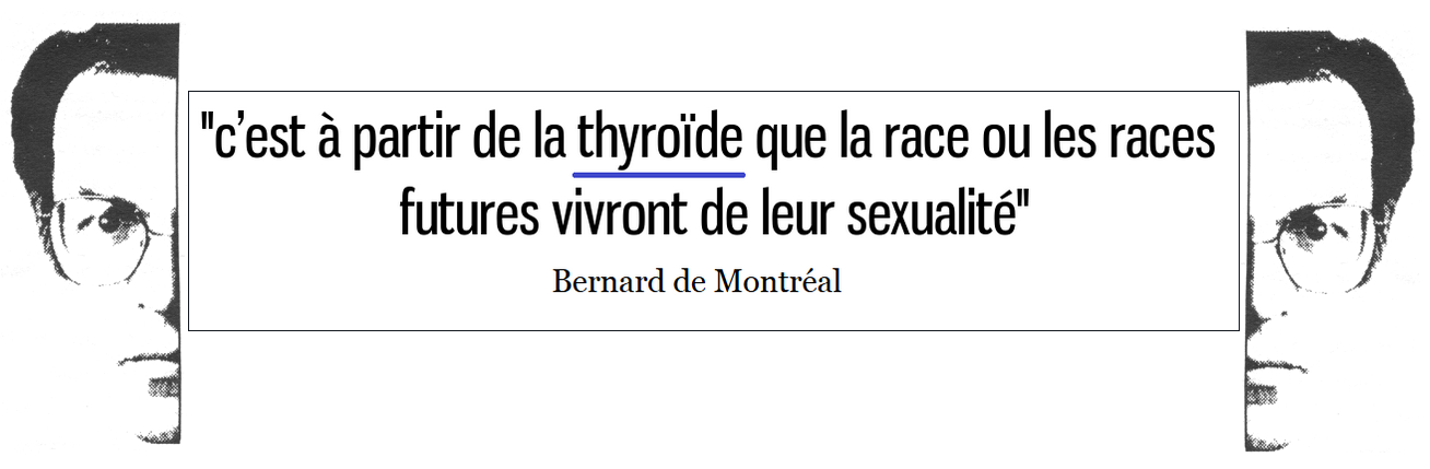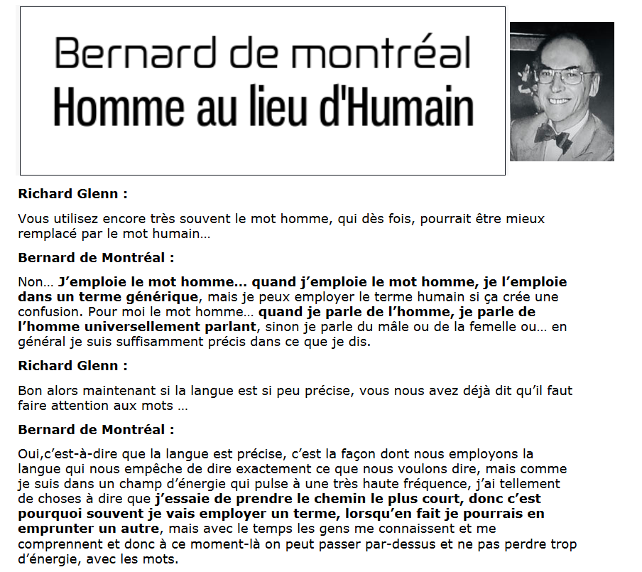 BERNARD DE MONTRÉAL :(BERNARD DE MONTRÉAL POUSSE UN HURLEMENT ! provoquant la surprise de la salle… et enchaîne calmement comme si de rien n’était..).