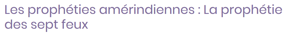 Selon cette prophétie, l'époque actuelle est la fin du Cinquième Feu. Au cours de laquelle de grandes difficultés ont accablé les autochtones parce que «la race à la peau blanche a lancé des offensives à travers tout le continent pour s'emparer de leur terre et les priver de leur indépendance».L'On commence à faire un petit pas vers le Sixième Feu. Au cours de cette nouvelle étape, «on commencera à parler de réconciliation entre les peuples et les nations».