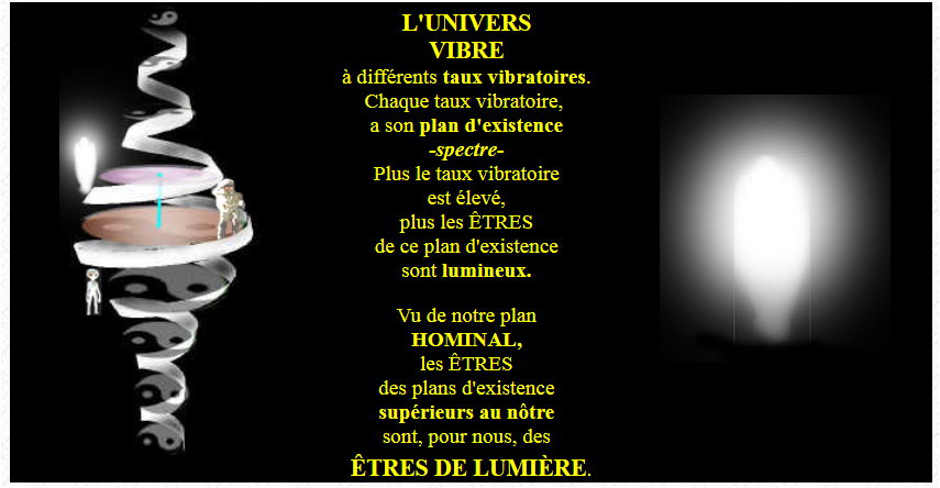 Tout dans l'univers est vibration.Deux principes animent cette vibration (On pourrait dire deux principe alchimique). Soit:Un principe de condensation (Coagula) qui permet à l'énergie spirituelle de se condenser en palier successif pour devenir matière.Un principe de dissolution (Solvae) qui permet à la matière de se spiritualiser en palier successif.