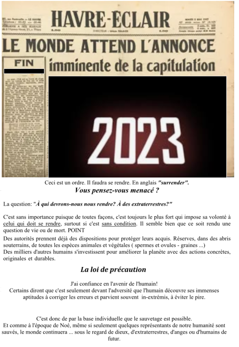SOMMATION EXTRATERRESTRE - SENS: Avertissement, mise en demeure avant un recours à la force.Synonyme injonction,capitulation...Avertissement avec Ordres Factuels et Temporels, Sous menace.