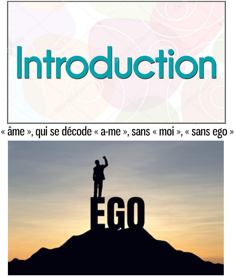 L'ego est un mot en latin qui veut dire "MOI".Ego est un substantif tiré du pronom personnel latin (moi/je).Il désigne généralement la représentation et la conscience que l'on a de soi-même. Il est tantôt considéré comme le fondement de la personnalité (notamment en psychologie) ou comme une entrave à notre développement personnel (notamment en spiritualité).selon Sartre, « l'Égo n'est pas le propriétaire de la conscience, il en est l'objet. ».l'ego est la représentation fausse qu'un individu se fait de lui-même. Cette représentation fait écran à la vraie nature de l'homme.Selon Joël Droulez,L’ego c’est de la personnalité en excès, et l'orgueil c'est de la fierté en excès...« LA MODESTIE EST UNE QUALITÉ DONT ON NE PEUT PAS SE VANTER ». Et c’est à ce niveau de Sagesse que l’ego doit se transformer pour ne plus se ressentir être dominé pas ses instincts triviaux et subjectifs de sa vielle nature animale.L’ego c’est toujours ; je veux, je veux, je veux ou moi, moi, moi, et rien que moi !La Sagesse c’est nous, nous, et toujours nous !Car rien ne se fait seul…Sur le plan spirituel, l’ego est souvent vu comme ce qui empêche d’accéder à son vrai “Soi”, c’est-à-dire à son être véritable, universel, inconditionné et illimité,la RÉVÉLATION DE SON M'ÊTRE.