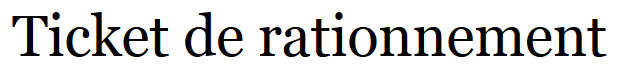 Un ticket de rationnement est un bon émis par un gouvernement pour permettre au titulaire d'obtenir de la nourriture ou d'autres denrées qui sont rares en temps de guerre ou dans d'autres situations d'urgence où un rationnement est en vigueur.Les tickets de rationnement, généralement distribués sous forme de cartes, ont été largement utilisés pendant la Seconde Guerre mondiale par les deux camps après l'interruption de l'approvisionnement normal de marchandises causé par les combats.