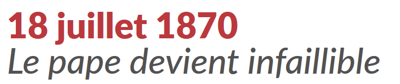 Le 18 juillet 1870, le concile Vatican I définit le dogme de l'infaillibilité pontificale. Les cardinaux reconnaissent comme vraies et irrévocables les interprétations du dogme prononcées par le souverain pontife.