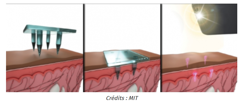 -21 déc. 2019 -Des chercheurs du MIT ont présenté, le 18 décembre 2019 à Washington, une technologie de vaccination sous-cutanée encapsulée dans des nanoparticules et des nanocristaux qui deviennent fluorescents à l’approche d’une lumière proche de l’infrarouge.Des ingénieurs du MIT ont inventé des nanoparticules injectables sous la peau et lisibles avec un smartphone permettant de confirmer qu'une personne a bien été vaccinée. Cette innovation serait utile dans les pays en développement où les cartes de vaccination en papier sont souvent erronées ou incomplètes.Une équipe de scientifiques du MIT a développé un outil afin que chaque personne vaccinée en garde la preuve dans son propre corps.