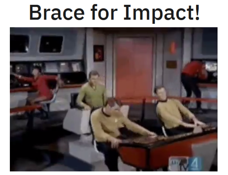 Alerte verbale informelle "Préparez-vous à l'impact" couramment utilisée au 24e siècle.