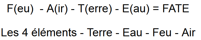 Le mot fée vient du latin "FATA", lui-même dérivé de "FATUM", le destin. A l'origine, la fée, c'est l'entité surnaturelle qui préside à la destinée des hommes. Elle peut être bonne ou mauvaise pour celui sur le destin duquel elle se penche.Les fées ont un nom qui dérive de fate, lui-même dérivant de toute une série de termes latins indiquant le destin, la fatalité. Les premières fées se nommaient d'ailleurs fatas. Le nom fée se dit "fairie", alors que l'adjectif est "fairy". De Plus, faith veut dire FOI.Également, avec les 4 Lettres de FATE on peut faire les 4 Éléments...