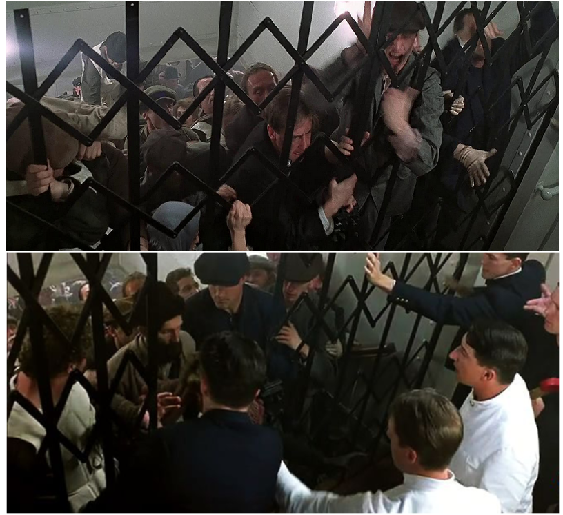 Lorsque le naufrage arrive, c’est l’apothéose : les grilles se ferment entre les différentes classes, et la lutte prend pour enjeu la survie. Le film présente d’ailleurs cela comme un choix assumé à bord : Une maman explique ainsi que les passagers pauvres ne pourront monter qu’après les riches dans les canots de sauvetage.Lutte des classes, sur le Titanic ? Oui, à l’embarquement même : les passagers sont répartis selon les services qu’ils peuvent payer, un procédé qui n’a finalement pas évolué. Simplement, aujourd’hui, les différentes classes sociales ne voyageront pas sur les mêmes navires.Les fameuses grilles sont un élément omniprésent dans le film,La séparation était surtout dans les esprits : des panneaux indiquant que l’accès était interdit étaient bien souvent suffisants, la peur de se faire prendre étant très grande. La différence de classe se voit tant dans les habits que la langue et le comportement et, dans une société très cloisonnée, cette différence ne pouvait que sauter aux yeux.les passagers de première classe, et une bonne majorité de la deuxième étaient parfaitement anglophones, ce qui leur a assuré une bonne compréhension de la situation.