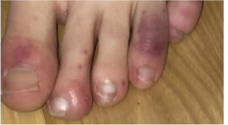 Cette décoloration qui ressemble à une engelure a été surnommée les « orteils COVID ». Elle peut aussi se manifester sur les doigts.« Les pédiatres connaissent très bien le syndrome de Kawasaki puisqu’il est souvent provoqué par des infections virales ou d’autres maladies infectieuses. Il n’est donc pas spécifique à la COVID-19, et ils (les pédiatres) savent comment le traiter.Le syndrome de Kawasaki se caractérise par une fièvre prolongée, un gonflement des ganglions, des arthrites, une éruption cutanée, ainsi qu’une inflammation de la paume de la main et de la plante du pied.