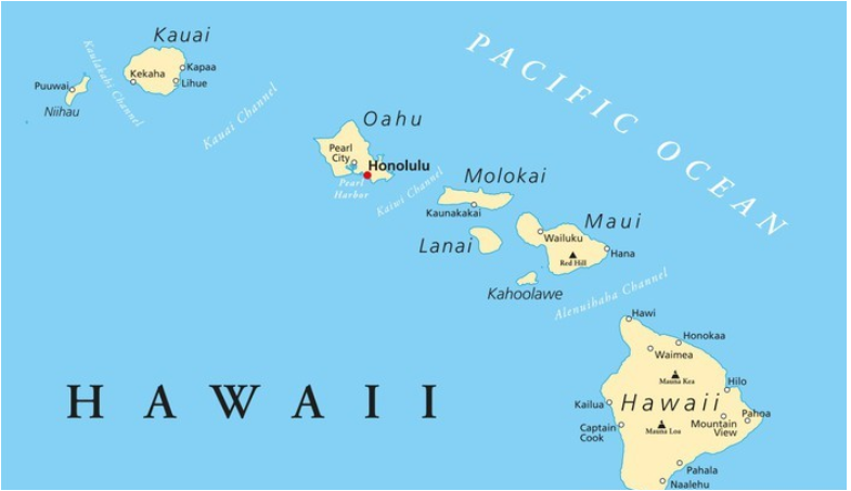 Commençons déjà par situer un peu l’archipel sur le globe !Ce n’est pas très loin de Tahiti,Hawaï est un archipel constitué de 137 îles exactement, situé au beau milieu de l’océan Pacifique, à quelques 4000 kilomètres de de la Californie et au sud-est du Japon.C’est aussi le cinquantième état des Etats-unis d’Amérique et le seul qui soit situé outre-mer !Les 8 îles principales de Hawaï sont Kauaï, Molokai, Kahoolawe, Niihau, Lanai, Maui, Oahu et…. Hawaï, également surnommée « Big Island ».