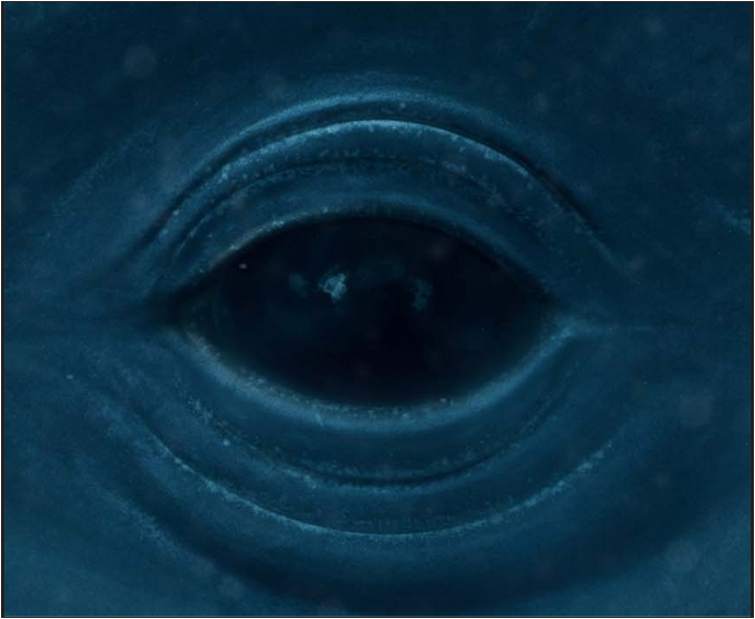 Situés de chaque côté de la tête, ovales et placés au-dessus de la commissure des lèvres, les yeux des baleines sont petits comparativement à la grande taille des cétacés. Ils sont généralement de couleur foncée. Cette couleur est principalement déterminée par la quantité et le type de pigments présents dans l’iris de l’œil.Pour éviter les irritations, et comme elles n’ont pas de glandes lacrymales, les baleines possèdent des paupières pour fermer les yeux et ont des glandes qui produisent une huile recouvrant la cornée pour la protéger.Elles ont aussi une épaisse sclère (enveloppe externe de l’œil), une épaisse cornée, un réseau complexe de vaisseaux sanguins et des muscles oculaires massifs pour protéger les yeux des fortes pressions et des températures froides.