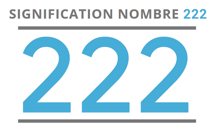 -Très souvent, des séquences de chiffres exactement identiques vous sont délivrées afin d’attirer votre attention. L’Univers s’arrangera toujours pour trouver le moyen de vous faire parvenir ses messages et se sentir « appelés » en voyant des nombres répétés fait parti de ses « stratagèmes ».Le nombre 222 porte les attributs du nombre 2 et 22, c’est donc un nombre extrêmement puissant à recevoir en guidance. Les énergies vibrationnelles de 222 sont extrêmement élevées, et c’est un rappel positif que tout est dans l’ordre divin et qu’il n’y a pas besoin de pensées ou de préoccupations négatives. Les inquiétudes et les doutes minent nos réserves d’énergie, et le nombre 222 semble nous réconforter chaque fois que l’anxiété prend trop de place dans nos pensées.le nombre 222 est extrêmement positif et tend à vous rassurer pour vivre un futur serein. Le chiffre 222 apparaît de façon répétée pour vous garantir que tout se passera bien sur le long terme.Pour comprendre la signification de 222, les significations des chiffres 2 et 6 doivent être prises en copte. Le nombre 222 a évidemment des liens étroits avec le 2, mais il se décompose en 6 lors de l’ajout des trois 2 (c’est-à-dire 2 + 2 + 2 = 6).Bien qu’il n’y ait pas de 6 dans ce nombre, 222 est plus lié à 6 qu’à 2. Bien que le nombre 2 soit associé à la coexistence et à la coopération dans des relations de toutes sortes, 6 est davantage associé à la famille.Le nombre 6 est aussi un nombre d’idéalisme, d’harmonie et de guérison. Rassembler 2 opposés pour créer un tout, c’est ce que le 6 signifie.