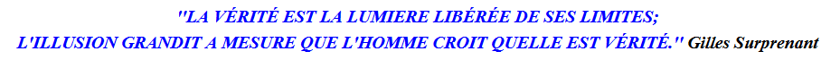 Comme tout prisme , il est composé de plusieurs facettes , un peu comme un diamant . Plaçons ce prisme maintenant au centre d’une table et imaginons plusieurs personnes tout autour , en train de le regarder , chacune se trouvant bien évidemment à un endroit différent des autres . A un moment donné , imaginons qu’un rayon de lumière vient frapper le prisme . Comme chacun le sait , la lumière sera décomposée en plusieurs couleurs en passant au travers de ce prisme .Chaque personne , n’étant pas positionnée au même endroit que les autres , verra une couleur différente. Si nous comparons la vérité à la couleur produite par la lumière , chacun pourra jurer que la vérité peut être verte , jaune , rouge , bleu , etc …