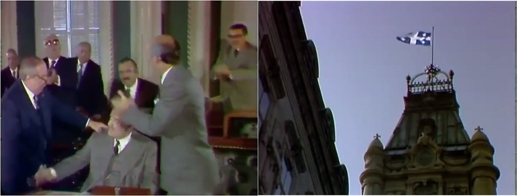 Cet extrait, tiré de l’épisode de Duplessis présenté le 8 mars 1978, revient sur un moment important de l’histoire du Québec : l’adoption du fleurdelisé. Le 21 janvier 1948, le gouvernement de Duplessis consacre le fleurdelisé drapeau national du Québec.