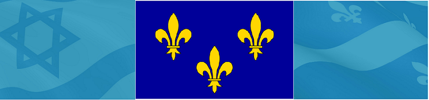 Le Drapeau du Québec est arrivé juste avant Israël. Ils ont seulement Inversé les couleurs.Le symbole du lys représente la fleur vue de profil mais si on observe cette fleur du dessus, on obtient l'étoile à 6 branches dite étoile de David.Le drapeau d'Israël a été adopté le 12 novembre 1948.