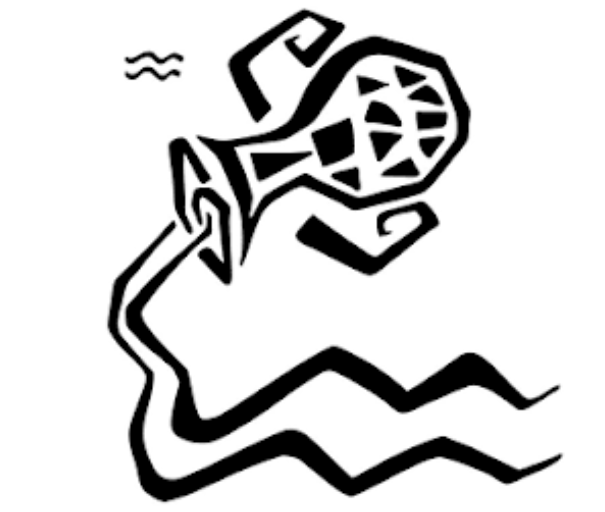 Il s'agit de deux motifs similaires positionnés parallèlement. Ils représentent des VAGUES dont les sommets peuvent être courbes ou pointus selon les représentations. La référence à l'eau est évidente car, par Verseau, il faut entendre porteur d'eau (verse eau).L’idéogramme du signe suggère les VAGUES de la mer qui se versent dans la cruche de l’homme. Les deux lignes représentent la ligne du métaphysique et la ligne du physique. Ces lignes ne se touchent jamais.Le regard clairvoyant perçoit deux types de civilisation: L'une constituée de gens qui sont pleinement reliés au monde spirituel et vivant cette communion avec la Nature et le monde angélique; l'autre constituée de ceux qui ont voulu à tout prix poursuivre l'expérience de la société matérialiste et égoiste, et qui vivent dans des conditions animale.ces hommes-animaux sont mauvais et destructeurs.